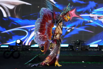 Hoa hậu Phương Linh loạng choạng diễn với trang phục cồng kềnh
